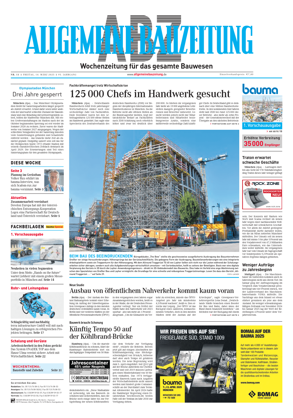 Der traditionsreiche Patzer Verlag mit Sitz in Berlin und Hannover hat zum Jahreswechsel die Weichen für die Zukunft gestellt: Nach fast 95 Jahren in Familienhand übergeben die bisherigen Verleger und Geschäftsführer Ulrich Patzer und Dr. Moritz Patzer die etablierten Titel ihres Verlages an die Mediavest AG. Unter deren Dach werden die Allgemeine Bauzeitung in der dafür neu gegründeten ABZ GmbH sowie die Neue Landschaft und die Stadt+Grün in der dafür neu gegründeten Neue Landschaft GmbH fortgeführt.